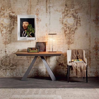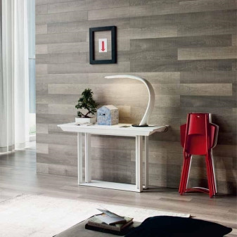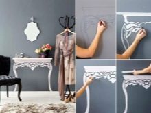 - سيكون الحل الأصلي تقليدًا لوحدة التحكم في الداخل. للقيام بذلك ، يمكنك ببساطة تثبيت سطح الطاولة على الحائط ، وإرفاق الأرجل المتعرجة المزخرفة بشكل منفصل أو ببساطة الرسم على الحائط كلمسة نهائية..