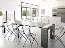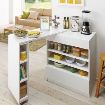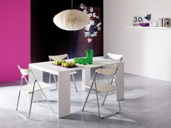 - الخيار الأكثر شيوعًا هو وحدة التحكم البيضاء التي تتحول إلى طاولة طعام. حتى لو تم تفكيكها ، سيبدو هذا الجدول خفيفًا وخفيف الوزن تقريبًا..