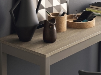 يتم تصنيع وحدات التحكم الأكثر موثوقية ودائمة من الخشب الصلب. الطاولات المصنوعة من خشب الصنوبر والبلوط والرماد وأنواع أخرى ذات هيكل خشبي طبيعي تنتمي إلى الطبقة الممتازة. لكن هذه المفاتيح باهظة الثمن. لذلك ، غالبًا ما يقوم المصنعون بدمج مواد مختلفة لإنشاء قطعة أثاث واحدة..