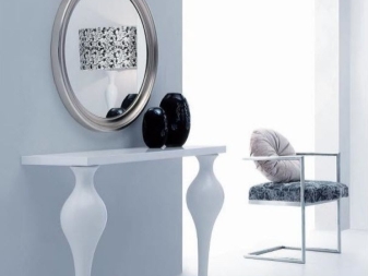 - بالنسبة لغرفة النوم ، يمكنك الاختيار من بين طاولات الزينة المصغرة القديمة أو الفاخرة أو البسيطة. ستكمل المرآة الكبيرة في إطار أنيق زاوية غرفة النوم تمامًا. يمكنك وضع الكونسول أمام السرير أو بالقرب من لوح الرأس ، حيث يمكن وضع فنجان قهوة أو كتاب أو مصباح طاولة..