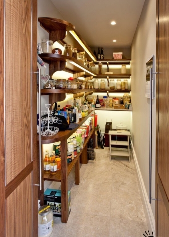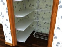 عند صنع الرفوف ووضعها ، يوصى بترك مسافة كبيرة بما فيه الكفاية بين الأرضية والعنصر الهيكلي الأول ، حيث يمكن تخزين الأكياس والصناديق الكبيرة والأشياء الكبيرة الأخرى في الجزء السفلي من غرفة المرافق..