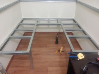 - يتم إرفاق القضبان المعدة بأطراف الغرفة وظهرها وجوانبها. اعتمادًا على الحمل ، ستحتاج إلى 2-3 براغي ذاتية التنصت.