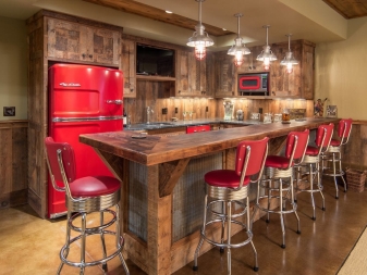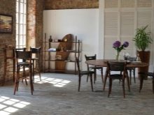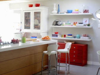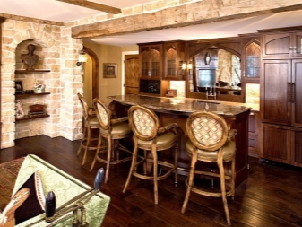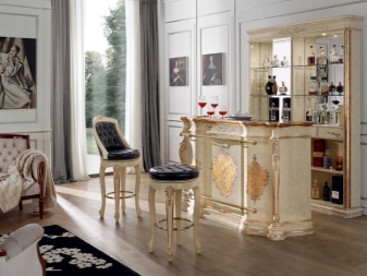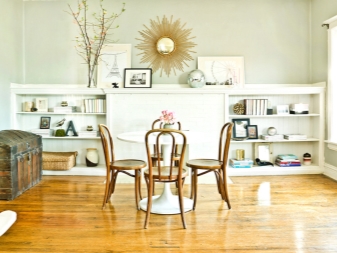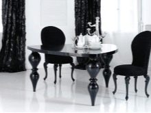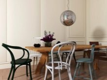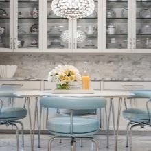 - ليس كل غرفة لديها القدرة على تركيب مجموعة من الطاولات والكراسي. يمكن تقسيم مساحة صغيرة بصريًا إلى مناطق منفصلة باستخدام الكراسي المستديرة والبار. كما أنها تفصل تمامًا منطقة تناول الطعام عن مكان إعداد الطعام..