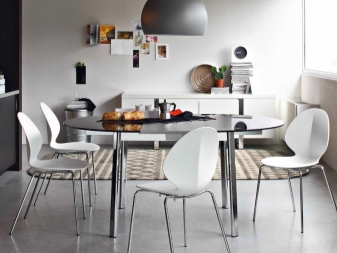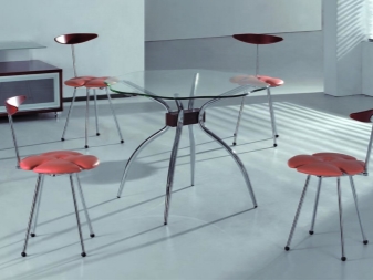 يستخدم المعدن في صنع قاعدة الكرسي. المادة مصنوعة من البلاستيك ، مما يجعل من الممكن إعطاء المنتج مجموعة متنوعة من الأشكال. هناك نماذج معدنية قابلة للطي بمقعد وظهر مغطى. يضفي اللمعان المعدني على الغرفة جاذبية. سارت الامور بشكل جيد مع جميع مواد التنجيد. لا تخاف الكراسي المعدنية المستديرة من انخفاض درجات الحرارة الكبيرة ، وبمرور الوقت لا تفقد خصائصها الإيجابية. هناك أيضًا عيوب في مثل هذا المنتج ، على سبيل المثال, مجموعة صغيرة من الألوان ، وزن كبير للهيكل.