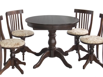 الكراسي المستديرة المصنوعة من الخشب الصلب الطبيعي هي أثاث فاخر. يعتبر أكثر احتراما من النماذج البلاستيكية. يتم استخدام مجموعة متنوعة من أنواع الأشجار. في أغلب الأحيان ، الكراسي مصنوعة من خشب البلوط. المواد الخشبية لها الكثير من الخصائص الإيجابية. منتجات الخشب الصلب المستديرة باهظة الثمن وتستخدم في منازل الأثرياء. الأرجل والظهر مزينة بالنقوش والورنيش لإضفاء مظهر نهائي على المنتج.