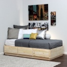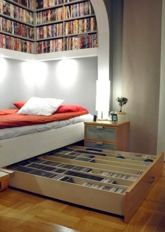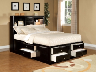 - مساحة تخزين إضافية جيدة هي النماذج ذات الأدراج., حيث يمكنك إخفاء أغطية السرير والوسائد والبطانيات والأشياء – أيا كان. تساعد أدراج الكتان على إخفاء كل شيء غير ضروري ولا تشوش الغرفة. تم بناء هذه الأدراج ، كقاعدة عامة ، في نماذج مزدوجة..