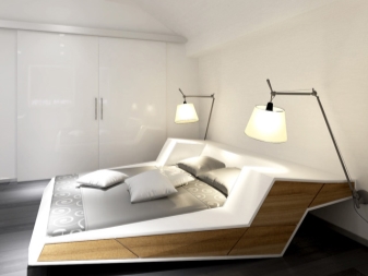 بالإضافة إلى الأحجام المدرجة ، هناك أيضًا أكثر الأحجام غير القياسية. كقاعدة عامة ، هذه أحجام كبيرة (النماذج الأصغر أقل شيوعًا) ، واثنان وأحيانًا أكبر بثلاث مرات من الأسرة القياسية. عادةً ما يتم تعيين هذه الأبعاد للنماذج ذات الشكل الفريد. على سبيل المثال ، للأسرة المستديرة أو البيضاوية أو المربعة. تندرج الأسرة المجعدة على شكل قلب أو نجمة أو قطرة ضمن هذه الفئة أيضًا. لا تتناسب هذه النماذج مع المعايير التي اعتدنا عليها ، فهي نادرة وقليلة الطلب ، ولكن في أيدي المصمم الماهرة ، قد يكون من المثير للاهتمام تخفيف التصميم الداخلي..