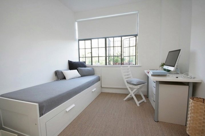 - تبدو التصميمات الداخلية بأسلوب بساطتها مقيدة تمامًا ومقتضبة. بالنسبة للغرف بهذا النمط ، من الأفضل اختيار أسرة ذات أشكال بسيطة. يعتبر السرير المستطيل ذو الزوايا الواضحة والمرتبة المرتفعة مثاليًا.