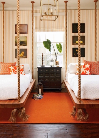 - يمكنك مفاجأة الضيوف بسرير معلق. من الجدير بالذكر أن الأسرة من حيث الوزن يمكن أن تكون مفردة أو مزدوجة الحجم..