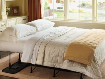 - من بين قطع الأثاث هذه ، يبرز نموذج غير عادي مثل طاولة السرير.. هذا نموذج بسيط إلى حد ما للسرير ، والذي ، عند تجميعه ، يتحول إلى طاولة أو خزانة صغيرة. شيء عملي للغاية: في الليل هو مكان للنوم ، وأثناء النهار يكون طاولة قهوة أو حتى مكان عمل كامل. من الجدير بالذكر أن حجم مثل هذا السرير يمكن أن يكون مرتبطًا بحجم سرير واحد وسرير ونصف. لذلك يمكن أن يكون فسيحًا بدرجة كافية.