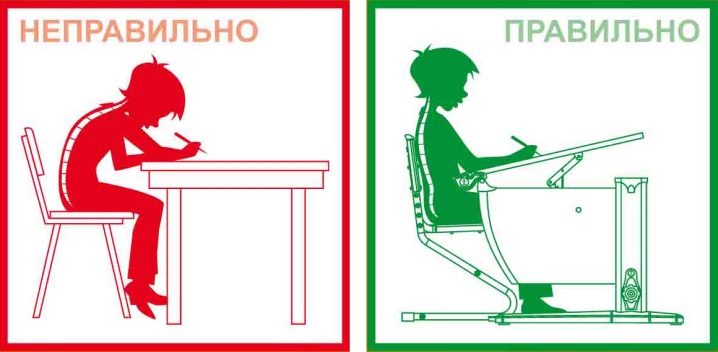 لا يمكن للمكتب والكرسي غير المريحين فقط إثارة تطور الجنف ، بل يتسببان أيضًا في ضعف الرؤية. يضمن الوضع الذي يجلس فيه الطفل على كرسي دامي المسافة الصحيحة من عينيه إلى سطح الطاولة.