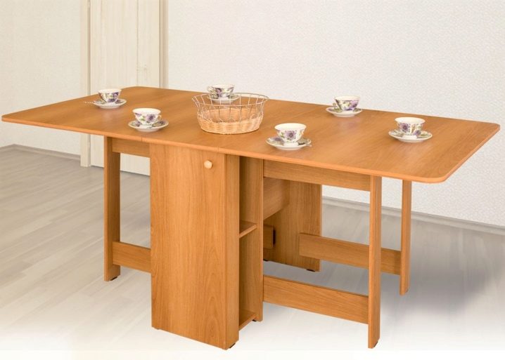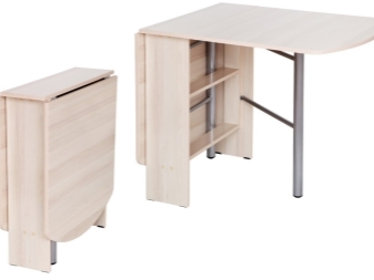 - “الكتاب” – هذا نوع من الطاولات القابلة للطي معروفة للكثيرين. يتكون الهيكل بأكمله من جزء متوسط ثابت وجزئين متحركين على الجانبين ، متصلان بالقاعدة بمفصلات. لفتح الطاولة ، تحتاج إلى رفع الأجزاء الجانبية وتأمين الأرجل. عند طي الكتاب ، يشبه الكتاب خزانة ضيقة أو وحدة تحكم.