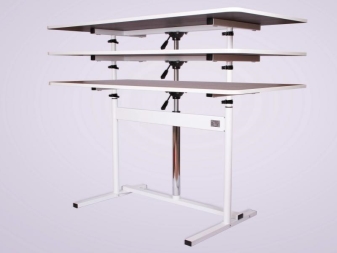 - صحافي – يتم إجراؤه في كثير من الأحيان فقط مع ضبط الارتفاع. تنفتح مثل المكتب – يرتفع الغطاء ليكشف عن مساحة التخزين. بالإضافة إلى ذلك ، يمكن تجهيز هذه الطاولة بأدراج ومنافذ وأرفف ، مما يزيد من وظائفها..