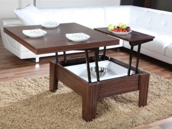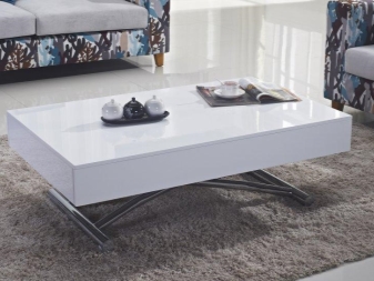 - التغيير الكامل للهيكل بأكمله ، سواء في منطقة الغطاء أو في الارتفاع. بالنسبة للمجموعة الأخيرة ، يمكن أن تتحول طاولات القهوة المفضلة لدى الجميع إلى طاولة طعام كاملة..