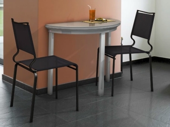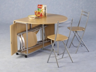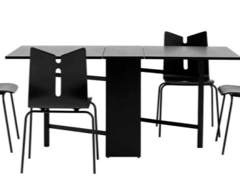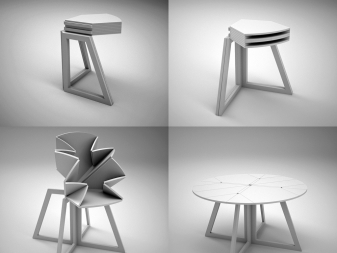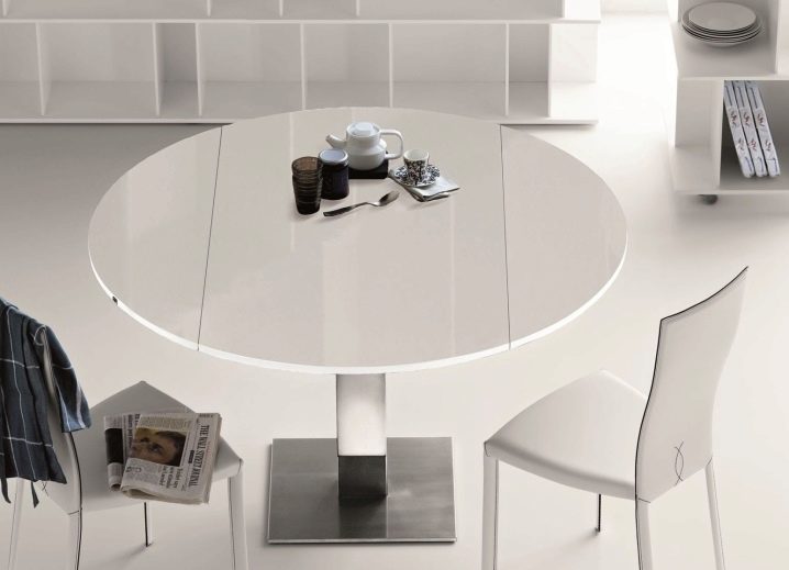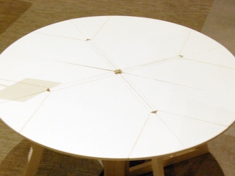 تبدو الجداول الثلاثية غير عادية. يمكن أن تتناسب مع أي مساحة. العيب الرئيسي هو أنها مناسبة لعائلة صغيرة ، وحتى عند تفكيكها ، لا تستطيع الشركات الكبيرة استيعابها.