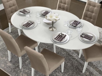 هناك أيضا طاولات مثمنة. هذا الشكل الأصلي مفضل من قبل عشاق Feng Shui ، لأنه يسمح لأفراد الأسرة بالجلوس في اتجاهات ميمونة..