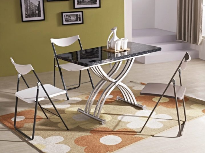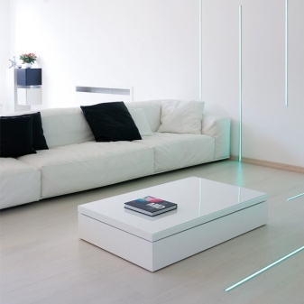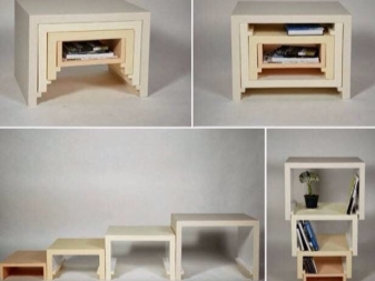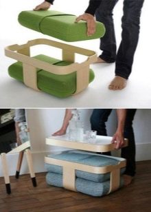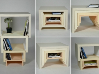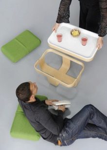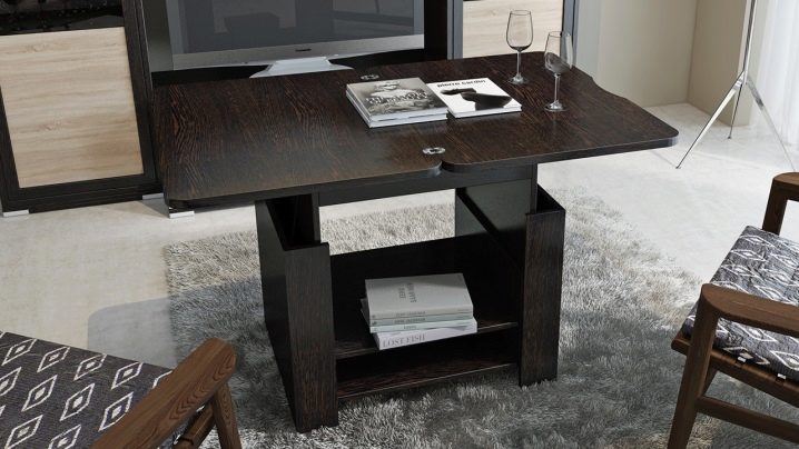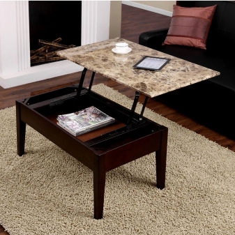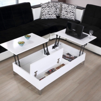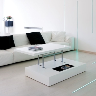 عند تجميعها ، تشغل طاولات القهوة التحويلية الحد الأدنى من المساحة وتكون غير مرئية تقريبًا. اعتمادًا على التصميم ، من المعتاد التمييز:
