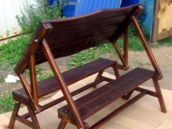 - طاولة البدلاء مناسبة للمنزل الصيفي. عند التجميع ، يكون هذا مقعدًا عاديًا ذو ظهر. وإذا تم التخطيط لعيد في الهواء الطلق ، فحينئذٍ بحركة طفيفة من اليد ، تتحول إلى طاولة متصلة بمقعدين.