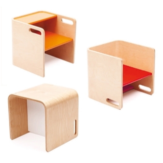 - كرسي طاولة بسيط للغاية من ماركة Bloom لأثاث الأطفال. وظيفة أخرى لمغير الشكل هي سلم السلم..