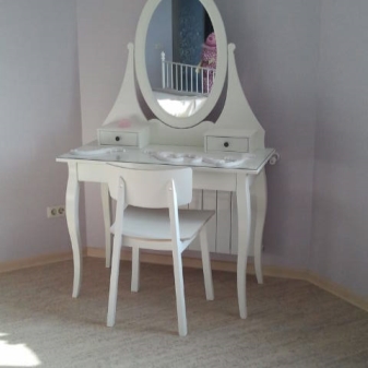 - بدوار. توجد هذه الطاولة تقليديا في غرفة النوم. سيساعد الجنس العادل دائمًا في الظهور بشكل رائع. عادة ، يتم تصنيع هذه المنتجات بأسلوب رائع ، حيث لا يوجد شيء لا لزوم له..