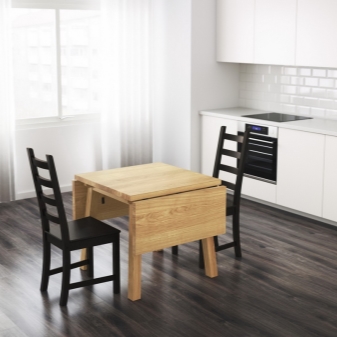 - الاكتناز. تنتج ايكيا نماذج صغيرة إلى حد ما. هذه الجداول مناسبة للعديد من الشقق التي لا تحتوي على متر مربع إضافي. في نفس الوقت ، يمكنك أيضًا العثور على خيارات فسيحة وواسعة..