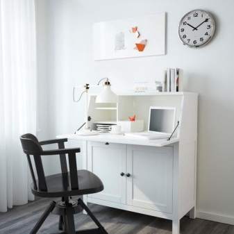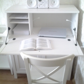 - مع مكتب. هذه الخيارات مضغوطة للغاية وعملية. في الأساس ، يتم تثبيت هذه النماذج في غرف النوم أو غرف العمل. إنها أنيقة للغاية ومريحة..