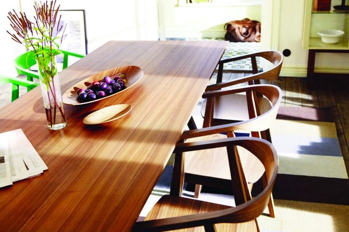 - يحب معظم المشترين طاولة خشبية حيث يتم استخدام خشب الصنوبر والبلوط والبتولا. هذه المادة الصديقة للبيئة آمنة ومتينة وموثوقة. سوف يخدمك الأثاث الخشبي لسنوات عديدة.
