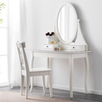 يمكن اختيار طاولة بدوار أنيقة بناءً على مفهوم الغرفة. تقدم إيكيا مجموعة متنوعة من الخيارات. في الأساس ، جميعها مزودة بمرايا وغالبًا ما تكون مصنوعة بألوان فاتحة وأبيض. بعد كل شيء ، كما تعلم ، الأبيض له تأثير إيجابي على نفسية الإنسان. وبالتالي ، أيًا كان الخيار الذي تختاره (دوار ، معلق ، كلاسيكي) ، يجب أن تنتبه جيدًا إلى معلمات المنتج. قبل الذهاب إلى المتجر ، يجب عليك بالتأكيد تحديد جميع أبعاد المنتج المقصود ، بالإضافة إلى موقعه..