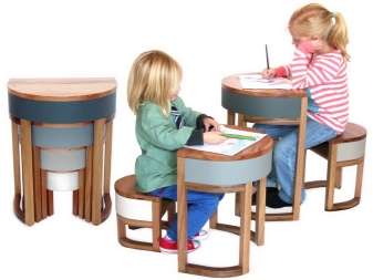 في هذه الحالة ، انتبه إلى مكتب كتابة مدمج لأطفال المدارس. هذه النماذج تحظى بشعبية كبيرة اليوم. ولكن إذا كانت الأسرة تعيش في شقة من غرفة واحدة أو كانت الحضانة صغيرة جدًا ، فعليك التفكير في كيفية توفير المساحة. سيتم غسل طاولة الأطفال الصغيرة المصنوعة من الخشب لحل هذه المشكلة.