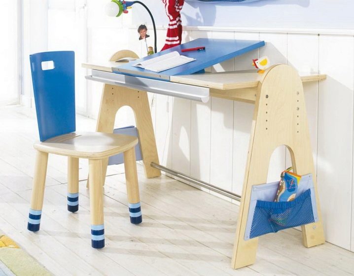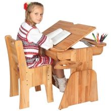 سيكون هذا الأثاث مفيدًا بالتأكيد في دروس الرسم. إنه بناء من قطعة واحدة ، يتكون من مقعد ومسند قدم خاص. توجد خلايا خاصة لجميع إكسسوارات الفنان الشاب. في الأساس ، هذه المكاتب مصنوعة من الخشب.. المزايا الرئيسية: