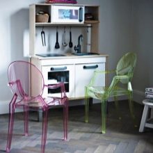 - الخفة (على عكس الخيارات الخشبية أو المعدنية ، حتى الطفل يمكنه وضع أو نقل الكراسي المصنوعة من البلاستيك من مكان إلى آخر) ؛