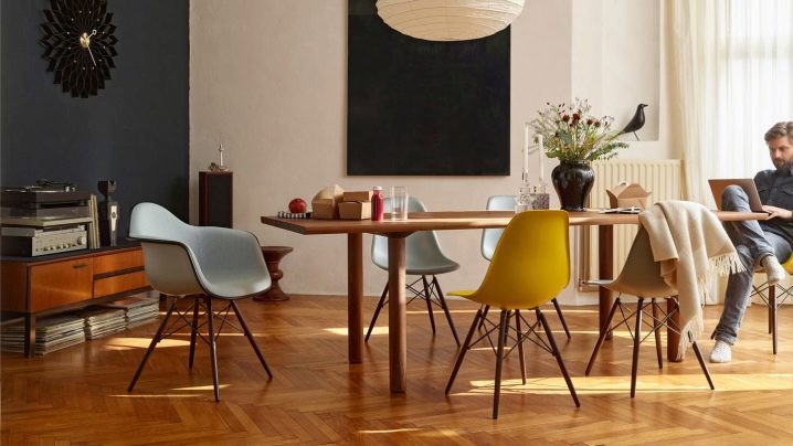 يعد اختيار الكرسي مهمًا جدًا لتنظيم المناطق الداخلية في أي غرفة. في هذه الحالة ، يجب أن يكون الكرسي مريحًا ومريحًا قدر الإمكان. يفي Eames بكل هذه المتطلبات بسهولة. لديهم شكل مريح مع نوبة مريحة إلى حد ما ومسند ظهر. بفضل هذا ، يتم ضمان أقصى شعور بالراحة. يتم استخدامها ليس فقط في المنزل ، ولكن أيضًا عند تأثيث العديد من المطاعم أو المكاتب..
