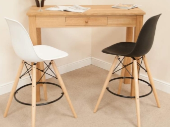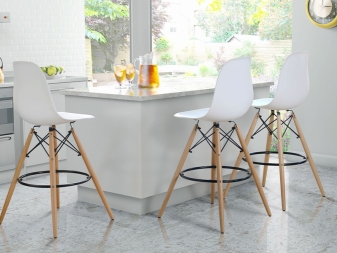 لاستوديوهات المطبخ الصغيرة ، إذا لم يكن للزوجين الصغار أطفال بعد ، فإن الكراسي شبه بار مناسبة تمامًا. تحتاج إلى اختيارهم وفقًا لنفس القواعد تقريبًا ، لكنهم يختلفون عن القواعد الشريطية من حيث أنهم يركزون بشكل أساسي على الراحة والتصميم الأصلي. بالإضافة إلى البلاستيك ، فهي مصنوعة من المعدن أو الفولاذ أو الخشب أو الزجاج. لكن البلاستيك من بينها ليس فقط الأكثر تكلفة..