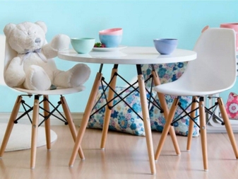 بالنسبة للمفروشات ، اختر قماشًا يسهل تنظيفه وقويًا بدرجة كافية. يمكنك الوثوق بمذاق الطفل من حيث اللون والتصميم ، لكن مقعد الكرسي لا ينبغي أن يكون طريًا. تم تصنيع نماذج Eames من مواد آمنة ، لذلك لا داعي للقلق بشأن صحة طفلك. الشيء الرئيسي, بحيث يكون الكرسي مريحًا بقدر الإمكان للطفل وفي نفس الوقت مفيد.