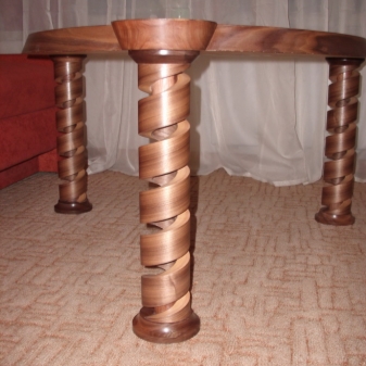 - يتم خيانة أكثر الأشكال إثارة للاهتمام من قبل الحرفيين على الأرجل الخشبية ، ومعالجتها باستخدام طريقة الطحن. هذه المنتجات مصنوعة من فراغات معدة مسبقًا. باستخدام مجموعة متنوعة من السكاكين والأقراص لآلة الطحن ، يقوم عمال النجارة بتزيين الأرجل بكل طريقة ممكنة ، وتزيينها بزخارف وأنماط مختلفة.