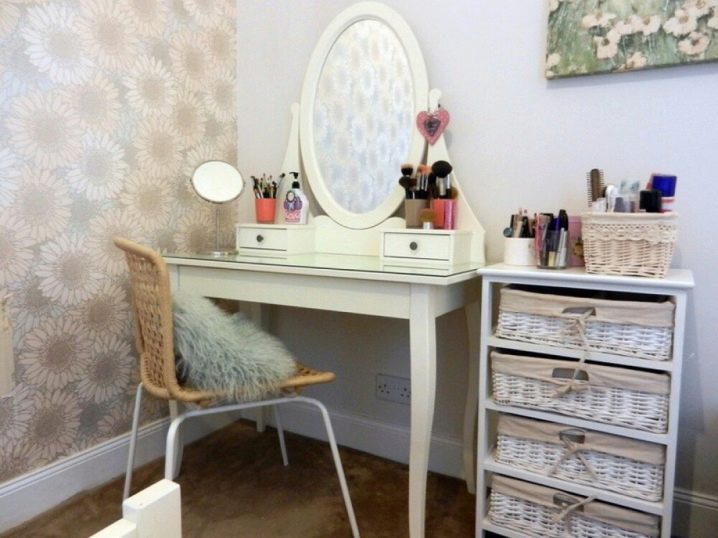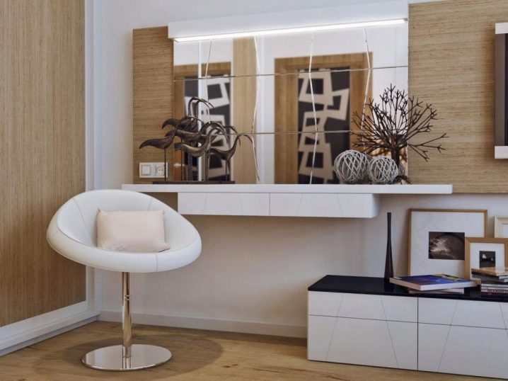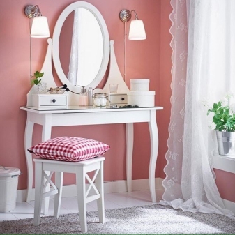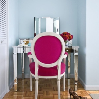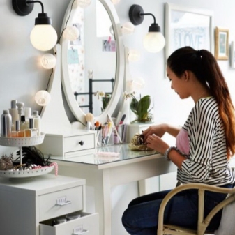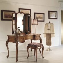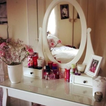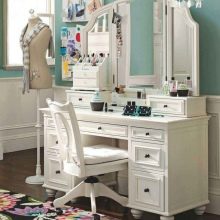 - تعريشة. طاولة غير عادية بثلاث مرايا دوارة – لأولئك الذين يحبون عمل المكياج وتسريحات الشعر ، هناك فرصة لرؤية أي من زواياهم.