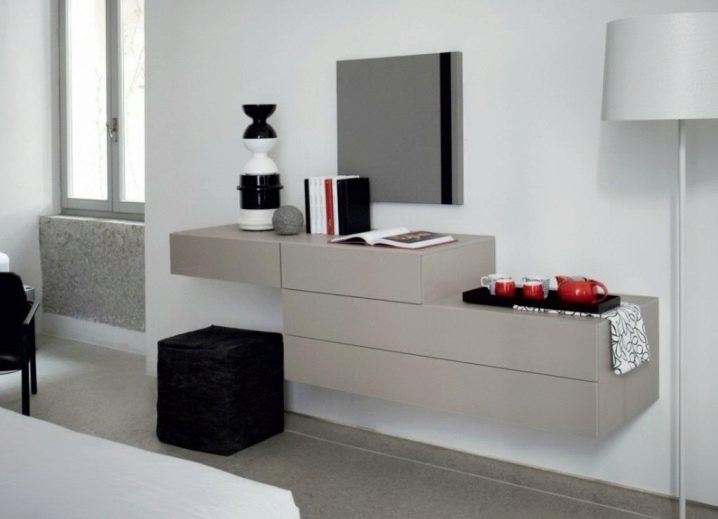- وحدة التحكم – منضدة معلقة بعناصر إضافية على شكل أرفف وأدراج ، ولكن بدون دعامات. ميزته التي لا جدال فيها هي الاكتناز الواضح وضآلة الحجم..