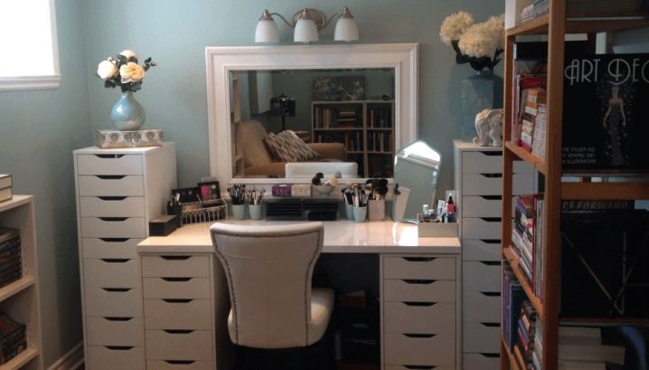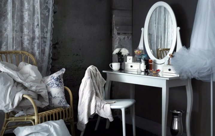 - على الرغم من بساطتها ، يمكن إدخال منضدة الزينة من ايكيا بأي شكل. اختيار الألوان صغير ، لكن الألوان الأساسية هي الأسهل للتكيف مع الديكور المعقد للمبنى ؛