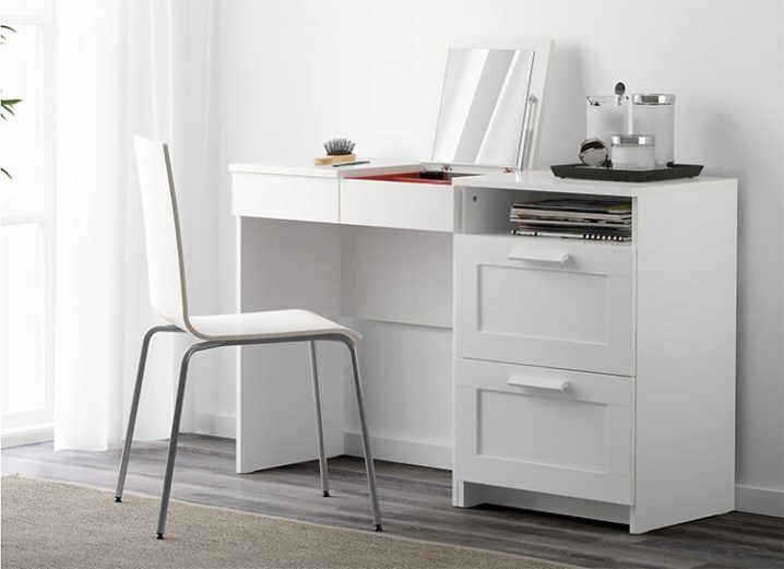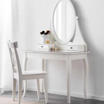 لمزيد من الأساليب الحديثة ، من الأفضل اختيار الطاولات الأخرى. سوف تتجذر مخططاتهم الصارمة في التصميمات الداخلية عالية التقنية والبحر الأبيض المتوسط. سوف يروق الشكل البسيط واللون الأبيض لطاولات Malm و Brimnes لمحبي البساطة. يمكن استخدام هذه الطاولات في غرفة المعيشة والأروقة ، حتى في الحمام. يعتبر سطح العمل الضيق والمرآة المخفية رائعين لغرفة النوم عندما يكون لديك مساحة صغيرة تحت تصرفك. يمكن وضع الطاولة في الردهة واستخدامها للمكياج وتسريحات الشعر ، ولكن يمكنك إخفاء جميع الملحقات في الأدراج السرية.
