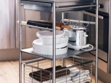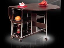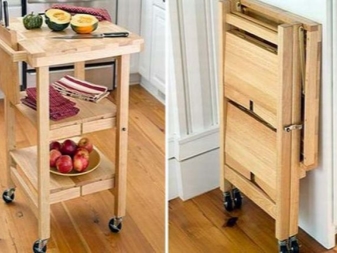 تحظى نماذج المحولات بشعبية خاصة. يمكن إخفاء قطعة الأثاث القابلة للطي هذه بسهولة خلف الأريكة ، في المخزن ، وتعلق ببساطة على الحائط. يمكن إزالة سمة المطبخ على العجلات فور انتهاء الطهي.