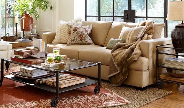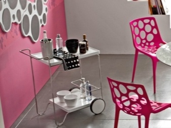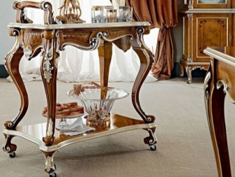 الأشكال الأصلية للطاولات على عجلات ، وتنوع المواد المستخدمة في إنتاجها وحلول الألوان تسمح لمثل هذه السمات أن تنسجم بشكل متناغم مع أي جزء داخلي من الغرفة. في الوقت نفسه ، تلعب العناصر الزخرفية والملحقات الخاصة بالمنتج دورًا مهمًا: يجب أن تشكل الإضافات الزجاجية وأجزاء الكروم والمكونات الخشبية مجموعة واحدة مع قطع أثاث أخرى.