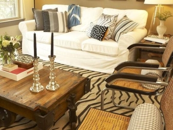 - الاتجاه العرقي. هذه السمات هي لهجة مشرقة في الغرفة بسبب تنوع الأشكال والمواد: الحجر ، الروطان ، الحجر ، الجلد ، إلخ. يُستخدم النحت أو الزخرفة كديكور..