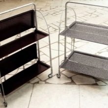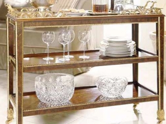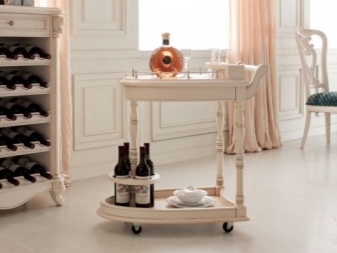 تتمتع المنتجات المحمولة على عجلات بأناقة خاصة – فهي تستخدم لتقديم الإفطار أو القهوة أو الشاي. طاولات التقديم هذه لها أغراض مختلفة: لنقل الأطباق من المطبخ إلى غرفة النوم أو غرفة المعيشة ، لتكون بمثابة سطح إضافي لأنواع مختلفة من العمل..