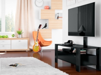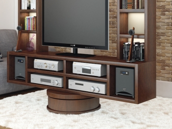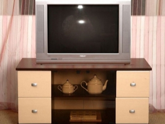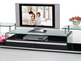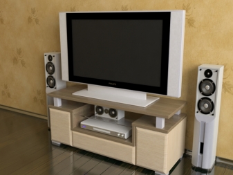 هذا يحد من احتمالية اصطدام التلفزيون وإسقاطه عن طريق الخطأ ، ويمنعه أيضًا من الظهور وكأنه مثبت على كرسي. إذا كان من المخطط وضع معدات وأجهزة فيديو إضافية ، فيجب إعطاء الأفضلية للهياكل المجهزة برفوف إضافي واحد أو أكثر ، والتي يمكن وضعها تحت سطح الطاولة الرئيسي وتقع على الجانبين.