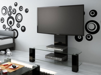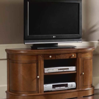 - الجداول ذات الأقواس مريحة لأنها توفر فرصة لمشاهدة التلفزيون من زوايا مختلفة ومن أي نقطة في الغرفة ، ما عليك سوى قلب الحامل في الاتجاه المطلوب. أيضًا ، يسمح لك النوع الدوار من التصميم بضبط ارتفاع التلفزيون وتحرير سطح الطاولة تمامًا ، ويسمح لك التثبيت الموثوق باستخدام هذه الطاولات في المنازل التي بها أطفال وحيوانات صغار ؛