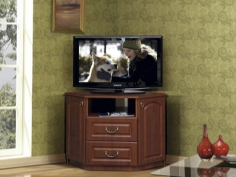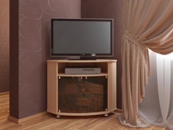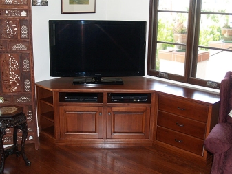 - طاولات زاوية تستخدم في المساحات الصغيرة وتوفر المساحة. عند شراء هذا الطراز ، يجب أن تأخذ في الاعتبار عرض الشاشة وشراء المنتجات التي يزيد طول جانبها الخارجي قليلاً عن أبعاد التلفزيون ؛