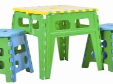 - هناك طلب كبير على الطاولات البلاستيكية القابلة للطي ، خاصة عندما يتعلق الأمر بالموديلات الصغيرة للأطفال. يسهل تنظيف هذا الأثاث وطياته ولا يشغل مساحة كبيرة أثناء التخزين. نفس الخيار مناسب أيضًا عند شراء طاولة طعام إضافية في الشارع أو في شقق صغيرة..