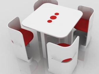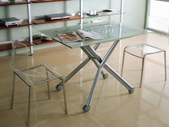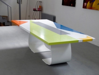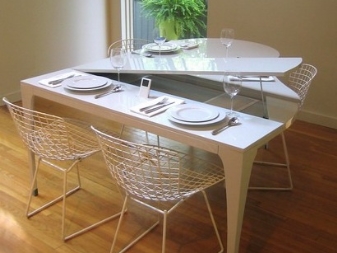 - مجموعة متنوعة من الموديلات بتصميم متعدد الوظائف. للبيع هناك طاولات عادية مصنوعة من هذه المواد ، وهناك منتجات قابلة للطي ، ونماذج منها لها تراكب إضافي.