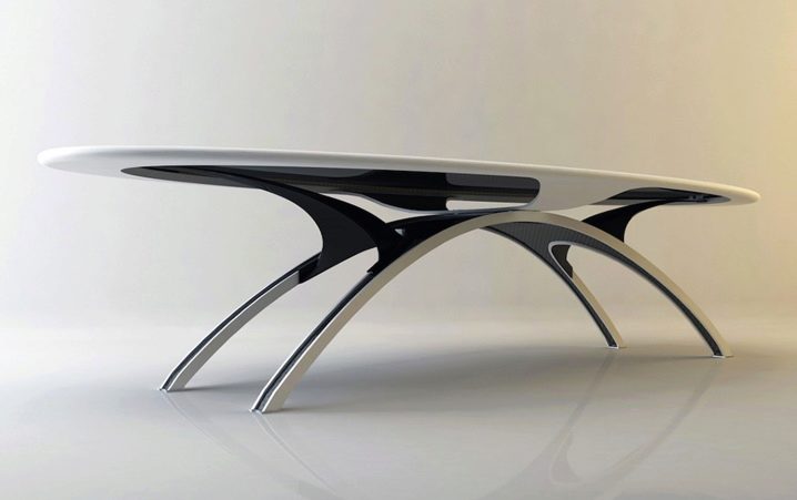 - التصميم المستقبلي. موديلات أصلية للغاية مصنوعة من أحدث المواد. ومع ذلك ، لا يتم استخدام المواد الخام الحديثة فقط للنماذج غير العادية. يمكن أن يكون الخشب الصلب التقليدي أيضًا أساسًا للطاولات المستقبلية. تصبح النماذج غير العادية تجسيدًا لإبداع المصممين ، وتحمل دائمًا فكرة غير عادية.