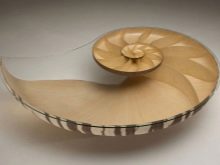 - “نوتيلوس”. قام المصممون بنسخ مائدة الطعام من صدف البحر. تشكل ورقة الخشب الرقائقي المطوية دوامة لها سطح زجاجي في الأعلى. أسطح الخشب مطلية بالورنيش ، مما يؤكد على النمط الفريد للخشب الطبيعي. سيكون هذا الأثاث مناسبًا في المناطق الداخلية البحرية..